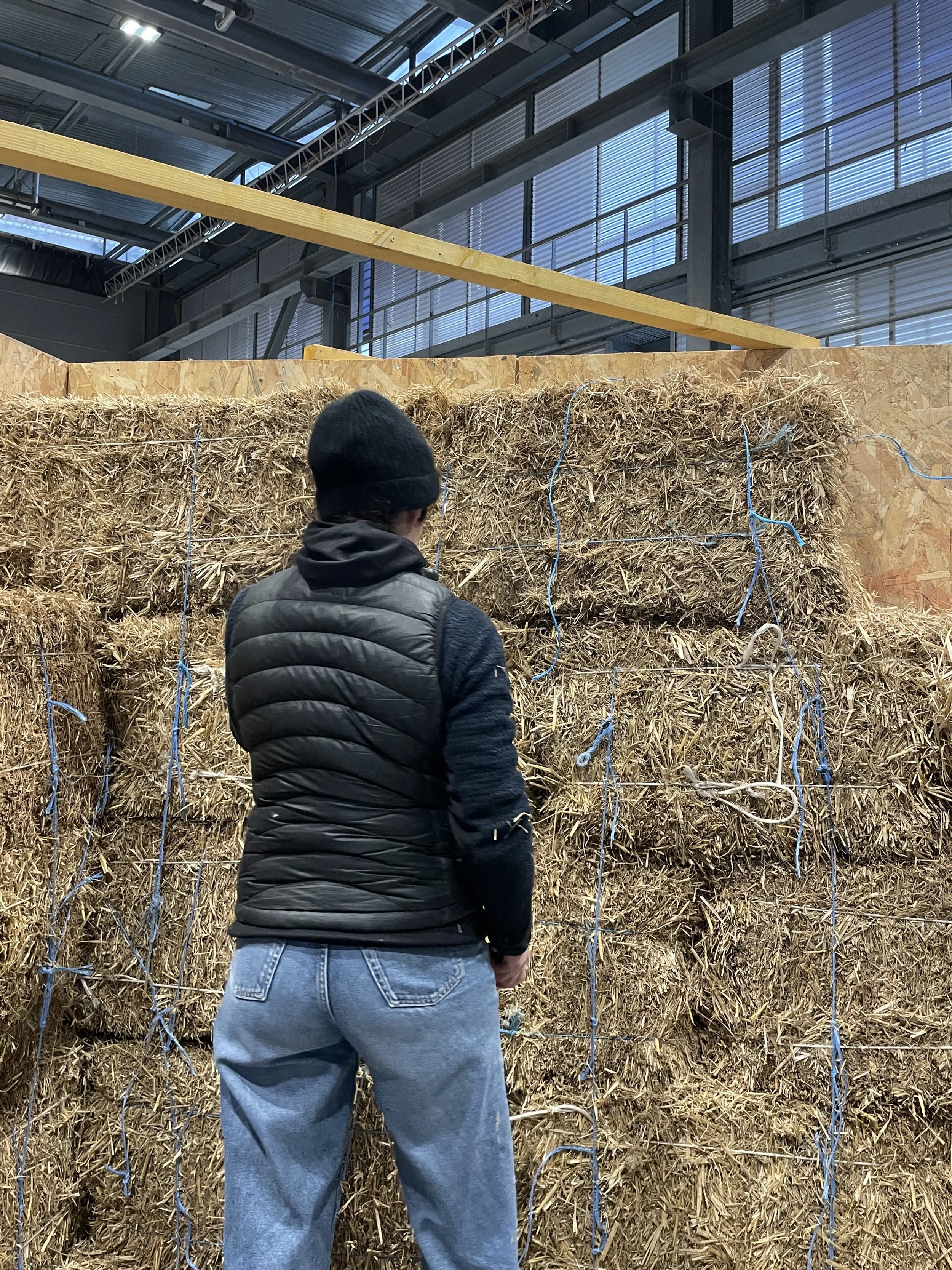 Maquette 1:1 pour tester le revêtement extérieur en jute d’une scénographie. En collaboration avec Emanuel Ris manufacture de mobilier et Yann Gross, photographe.