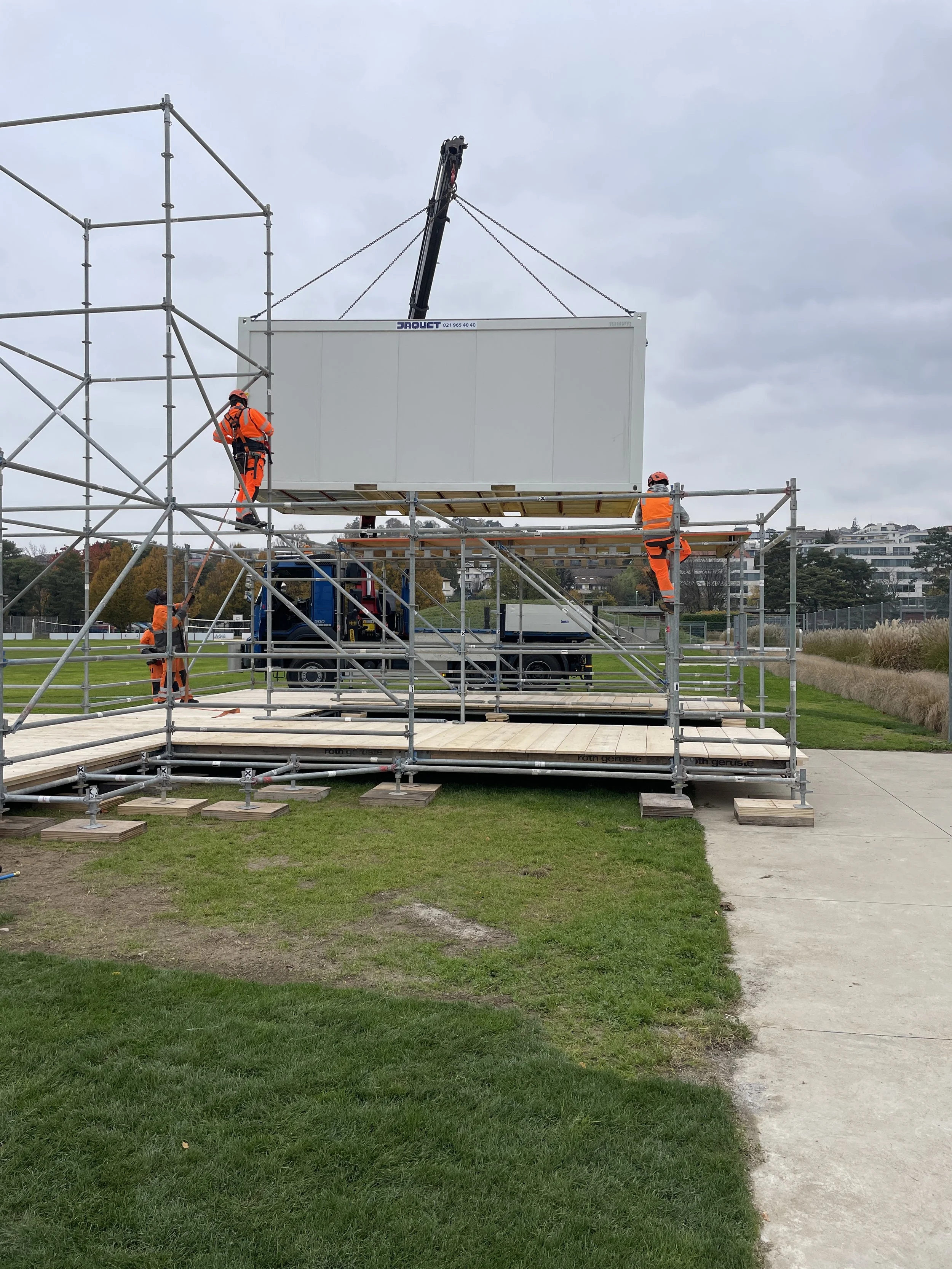 Autoconstruction du sauna les Bains des Rives au bord du Léman.